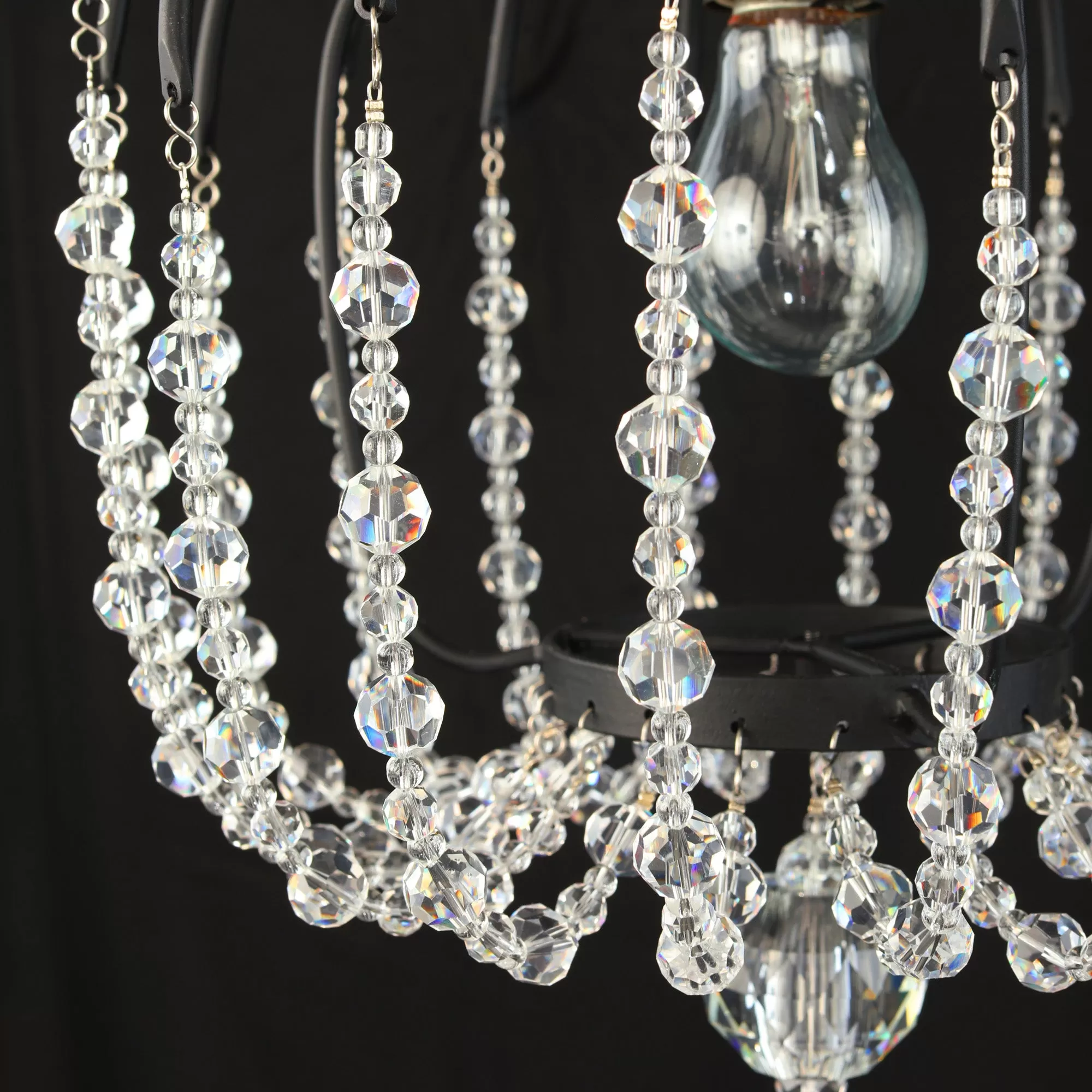 Parasol frames meet their crystal crush in this new pendant collection. Umbrella frames, carnival rides and birdcages clearly present in the design. But Continuing the frame lines with crystal is an unusual twist. Glam, coastal and cottage all coalesce together into one pretty, shimmery and airy pendant.