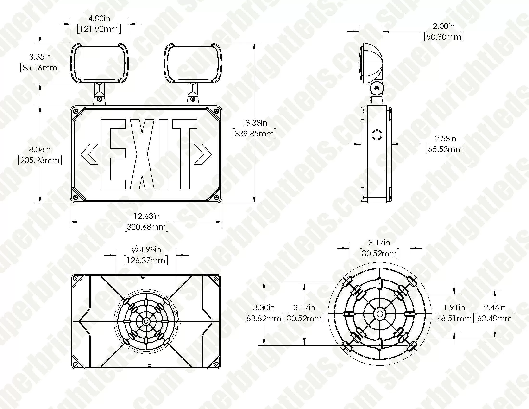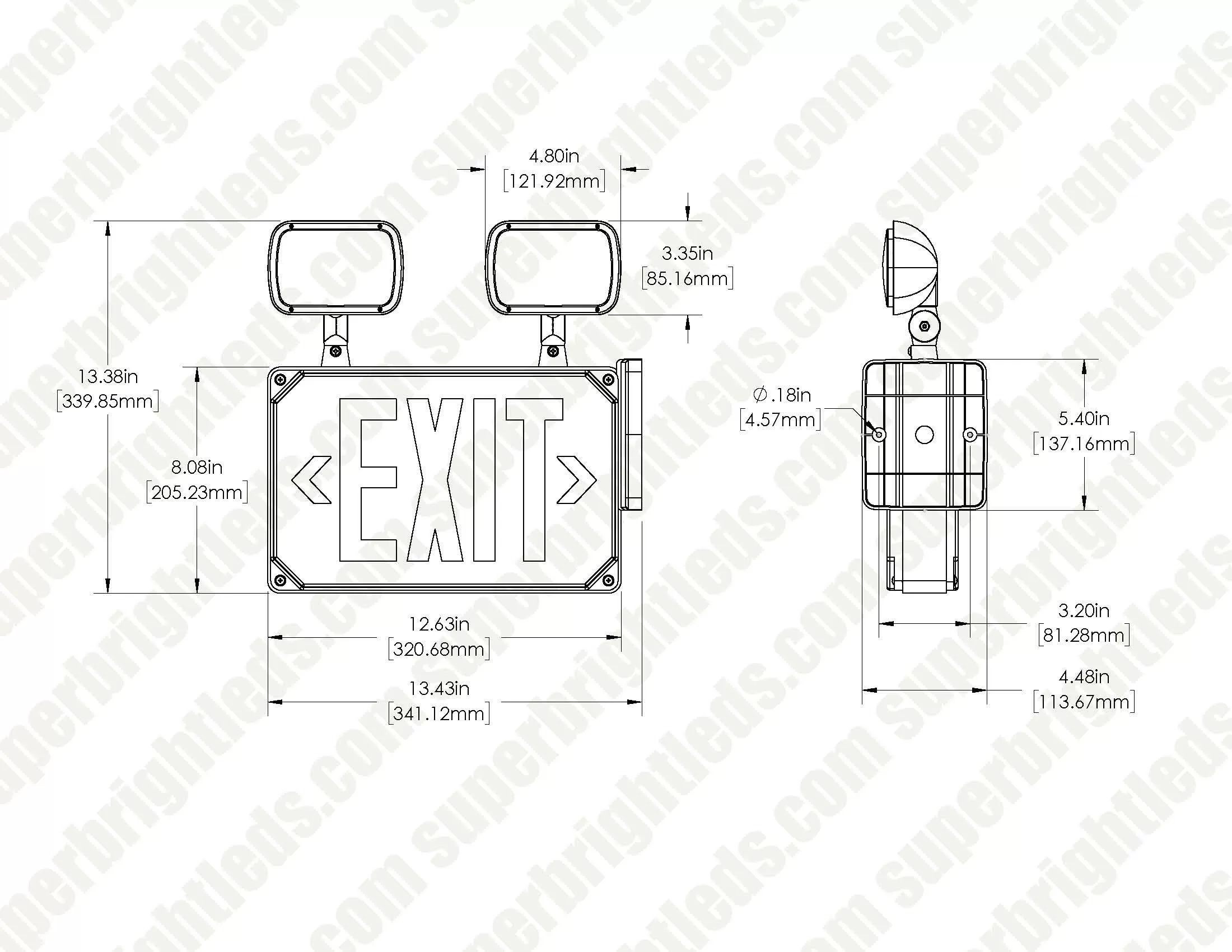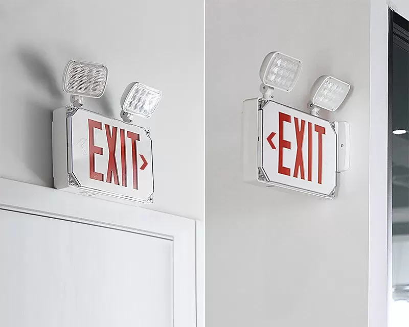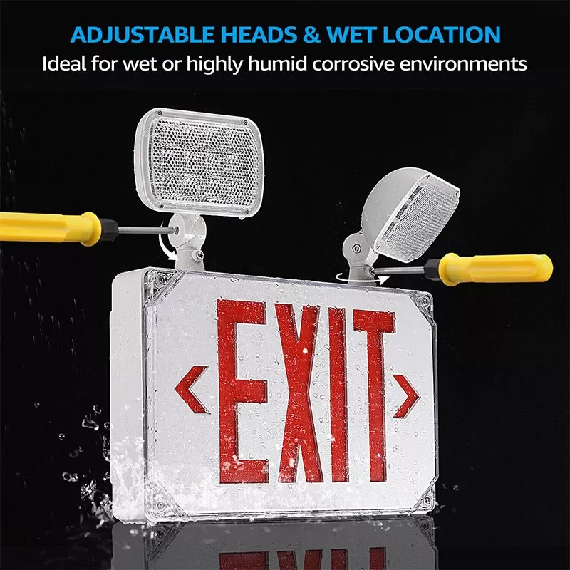 The combination wet location LED emergency exit sign with a battery backup is a compact and maintenance-free emergency signage solution for commercial and industrial locations. In the event of a power outage, the integrated Ni-MH battery backup produces 90+ minutes of emergency lighting from a 24-hour charge. The light is constructed of white thermoplastic ABS housing with an integrated charge indicator and test button. For added protection against dust and water the light has a clear polycarbonate cover. For easier exit identification, remove the directional arrows to point towards the exit direction and adjust the light heads for better visibility.