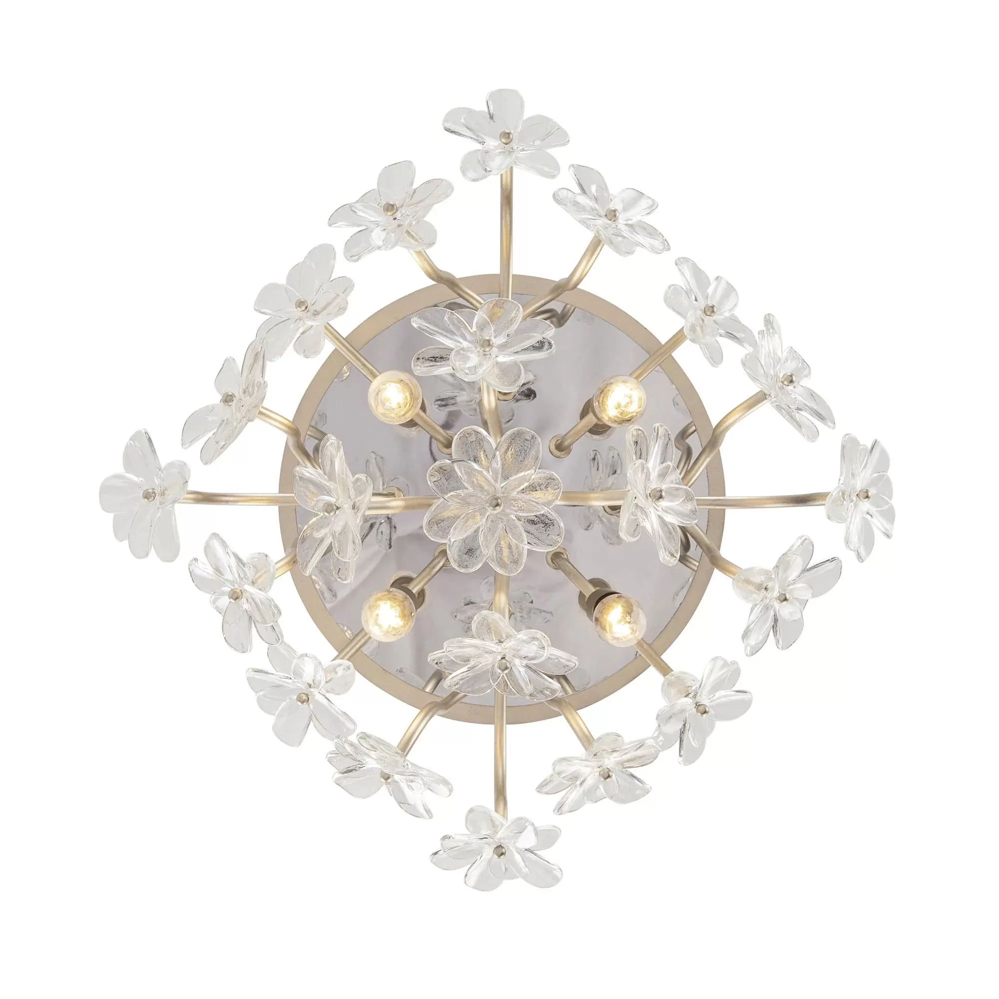 When you first see it aglow with its fine intricacies, it may not show, but the Wildflower collection started its path to existence thanks to Mary V. Walcott’s Oconee-Bells discovered in the Smithsonian Libraries and Archives Special Collections. Taking center stage is a touch of Danish modern on top of midcentury. Wildflower combines delicate, handmade ice glass flower petals, with equally delicate wispy hand-forged and recycled steel tubing and metal work. Available in gold or black.