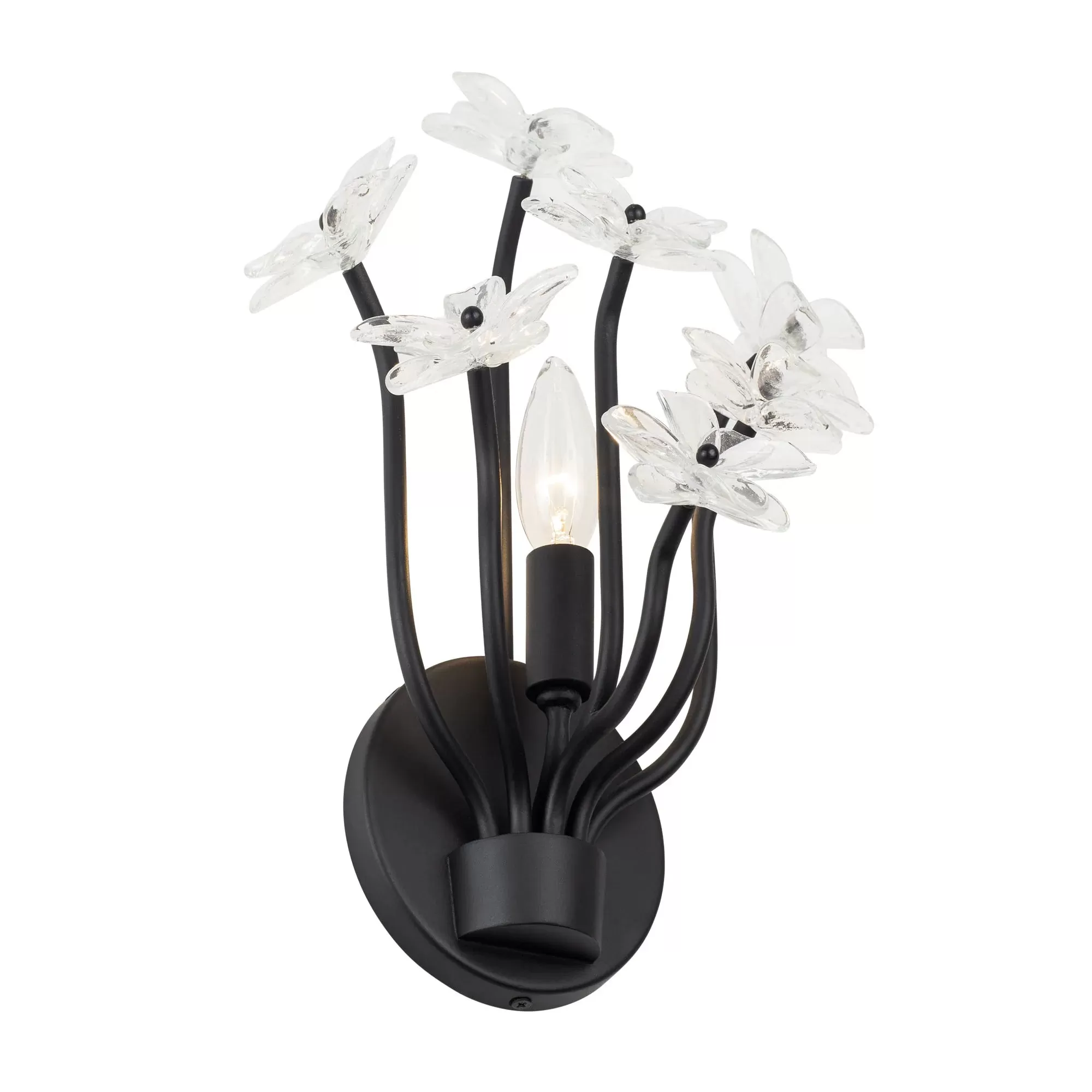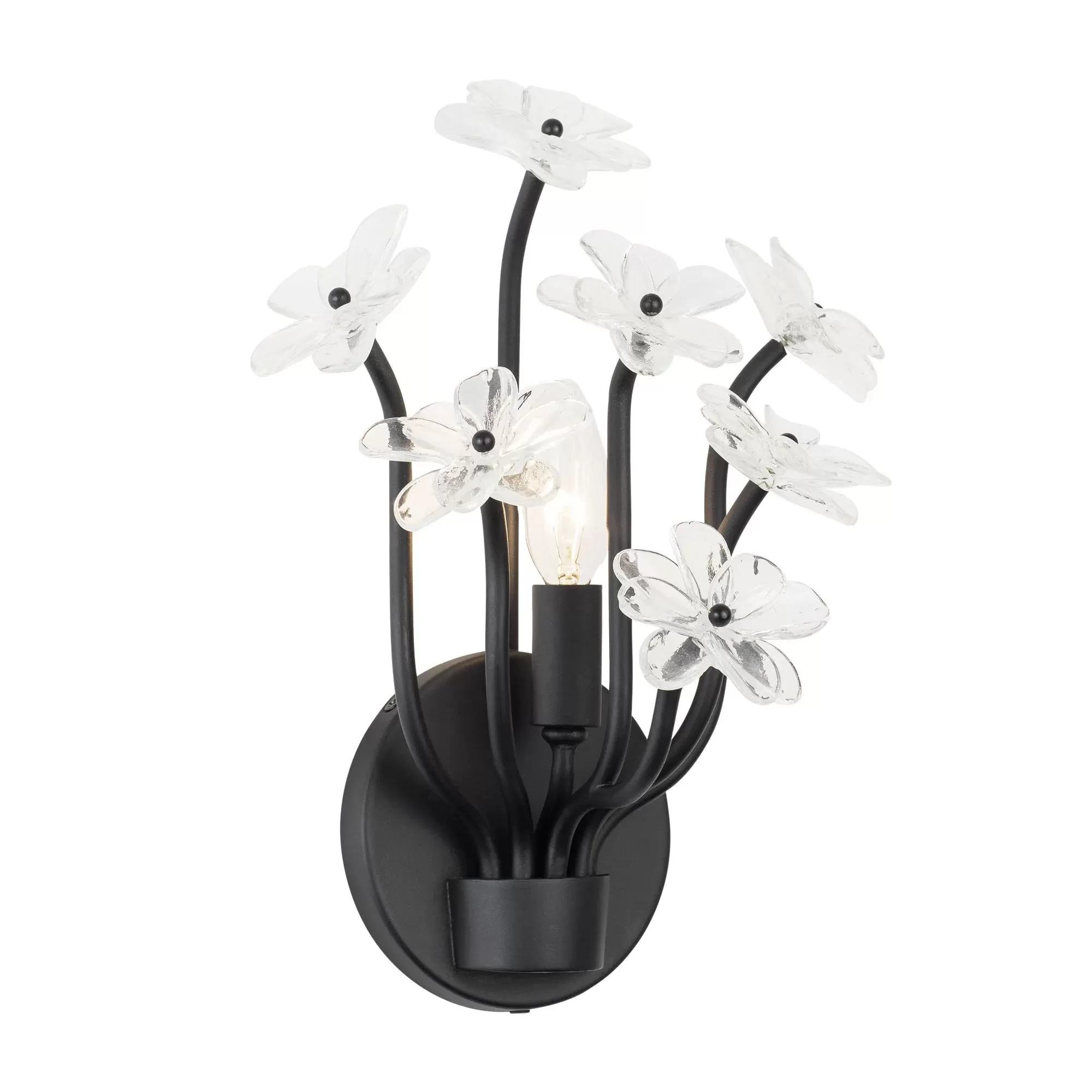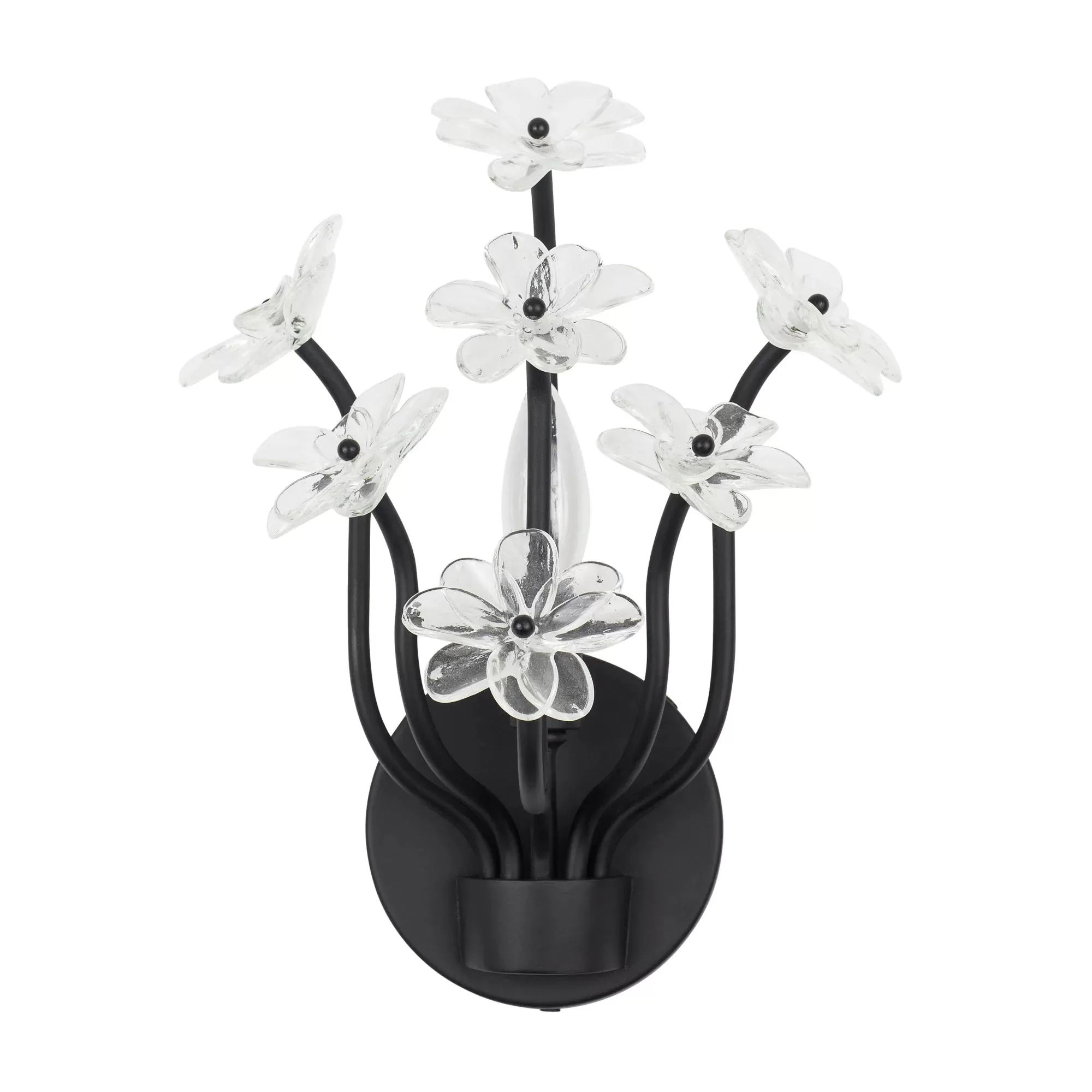 Hand-forged Recycled Steel. Handmade Recycled Glass Flowers. Available in Gold Dust with Artifact Accents or Matte Black Finishes.