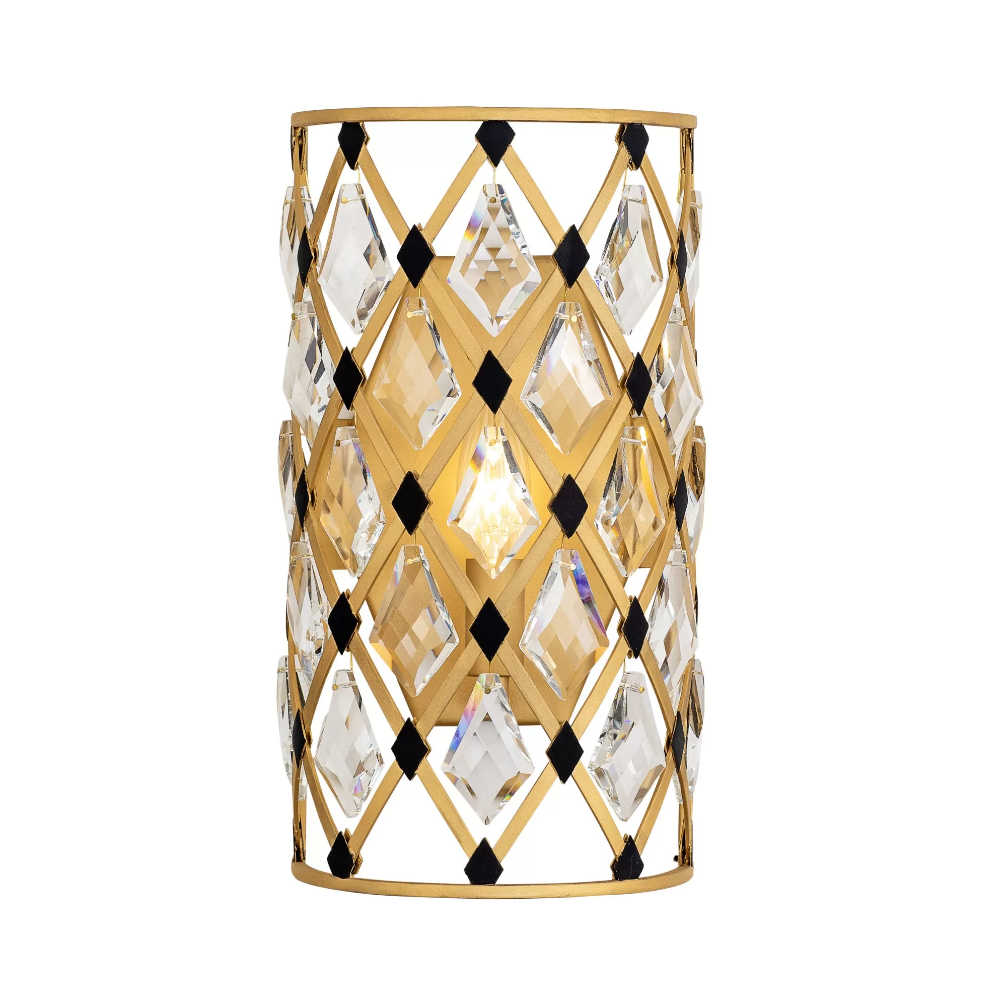 Hand Forged Recycled Steel. Double Harlequin Metal Frame. Premium Kite Shaped Optic Crystal Pendalogues.